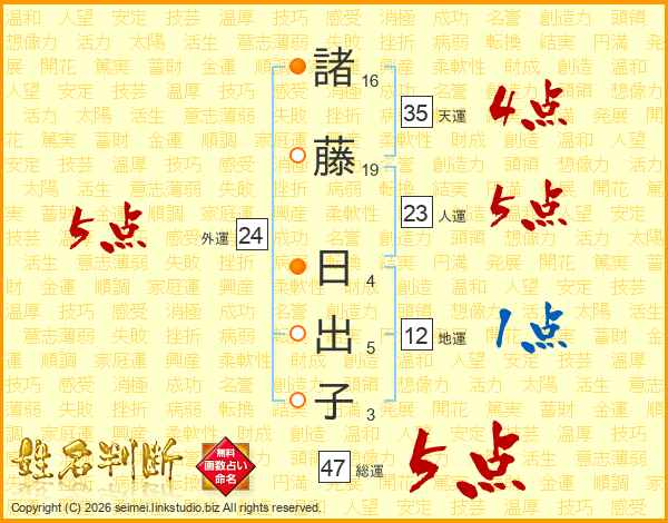 諸藤日出子さんの総運は47画の5点!