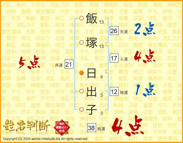 飯塚日出子さんの総運は38画の4点!