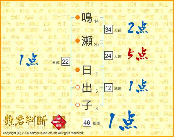 鳴瀬日出子さんの総運は46画の1点!