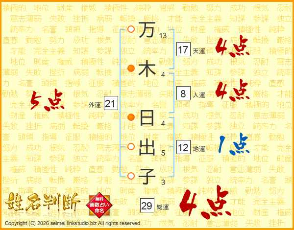 万木日出子さんの総運は29画の4点!