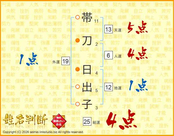 帯刀日出子さんの総運は25画の4点!