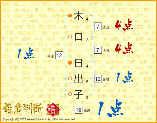 木(4画)口(3画) 日(4画)出(5画)子(3画)