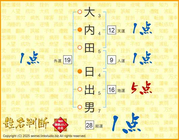 大内田日出男さんの総運は28画の1点!