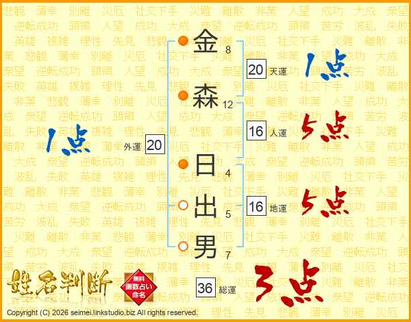 金森日出男さんの総運は36画の3点!
