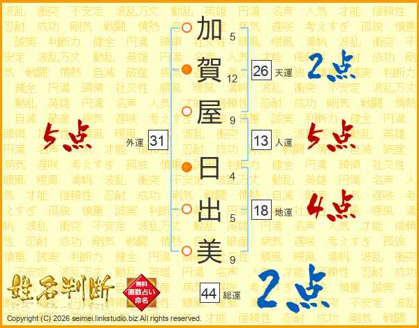 加賀屋日出美さんの天運は26画の2点!