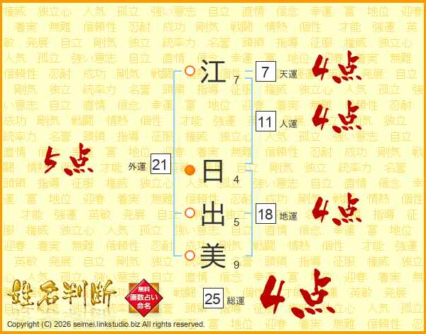 江日出美さんの総運は25画の4点!