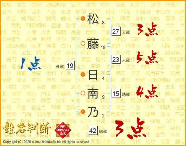松(8画)藤(19画) 日(4画)南(9画)乃(2画)