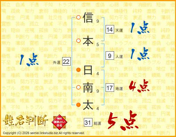 信本日南太さんの総運は31画の5点!