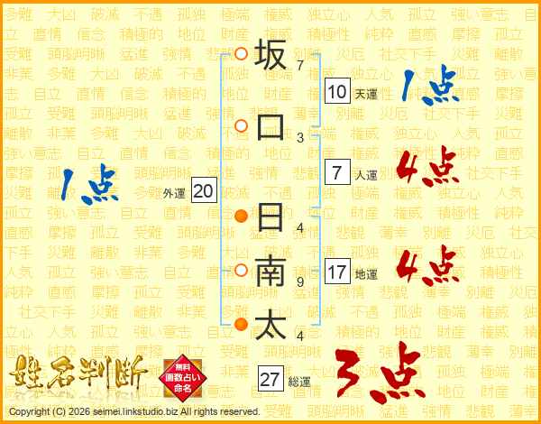 坂口日南太さんの人運は7画の4点!