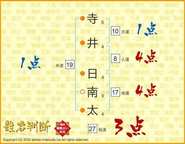 寺井日南太さんの天運は10画の1点!