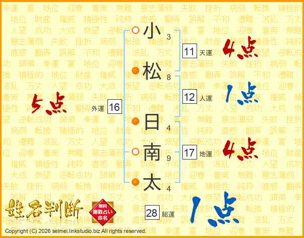 小松日南太さんの天運は11画の4点!