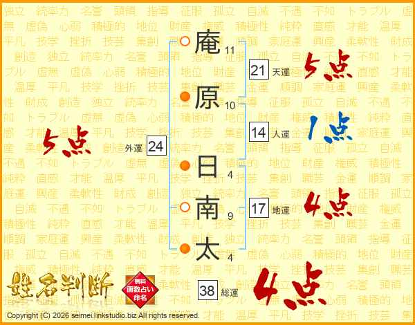 庵(11画)原(10画) 日(4画)南(9画)太(4画)
