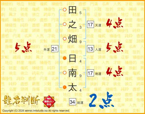 田之畑日南太さんの地運は17画の4点!