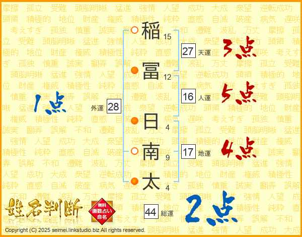 稲冨日南太さんの総運は44画の2点!