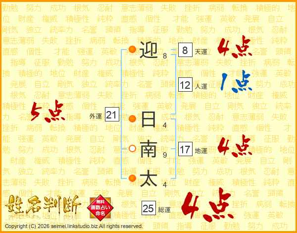迎日南太さんの地運は17画の4点!