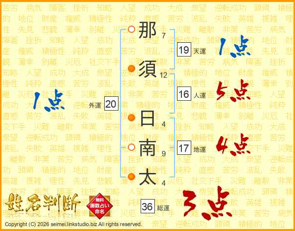 那須日南太さんの天運は19画の1点!