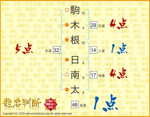 駒木根日南太さんの天運は29画の4点!