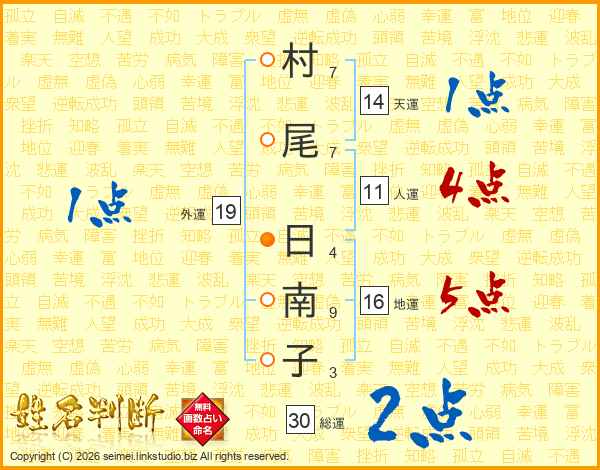村尾日南子さんの総運は30画の2点!