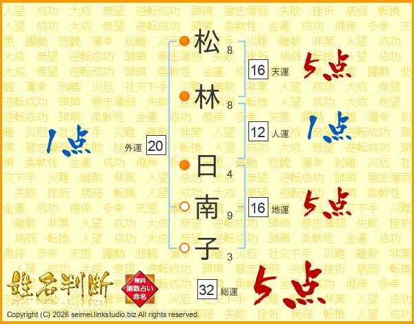 松(8画)林(8画) 日(4画)南(9画)子(3画)