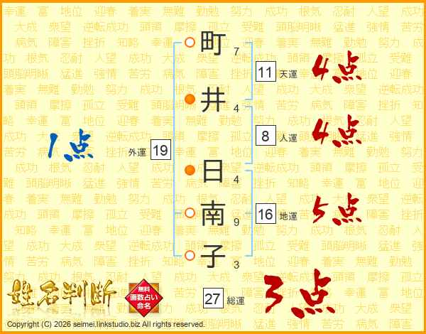 町(7画)井(4画) 日(4画)南(9画)子(3画)