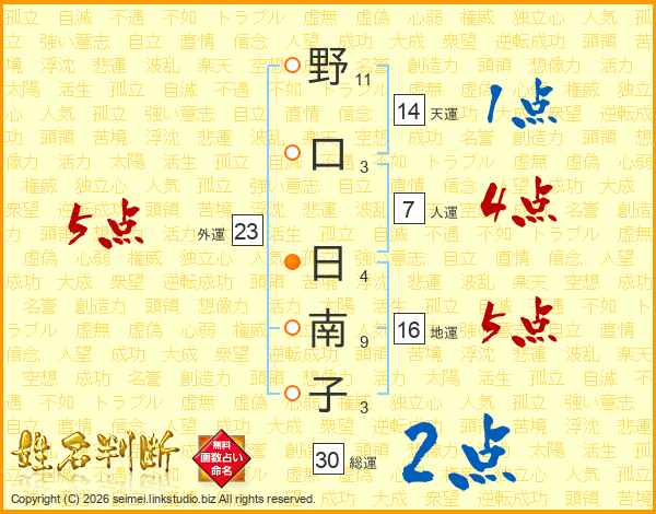 野口日南子さんの総運は30画の2点!
