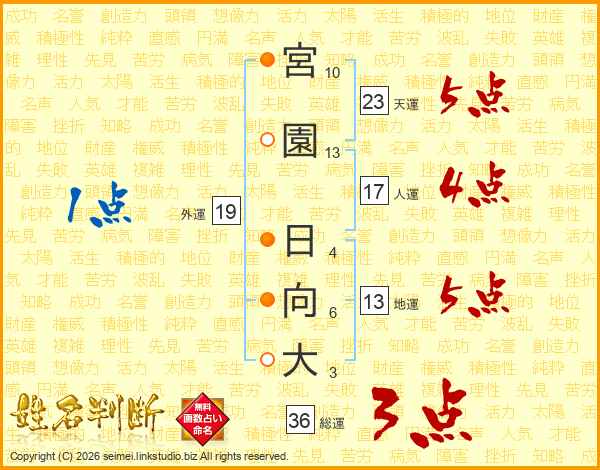 宮園日向大さんの天運は23画の5点!