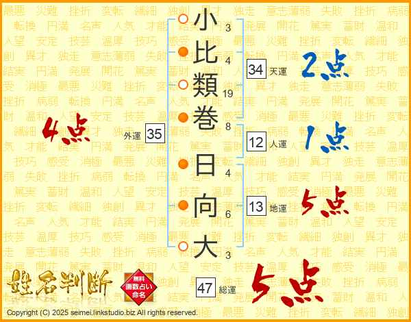 小比類巻日向大さんの総運は47画の5点!