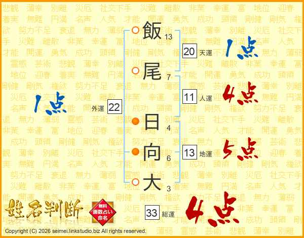 飯尾日向大さんの総運は33画の4点!