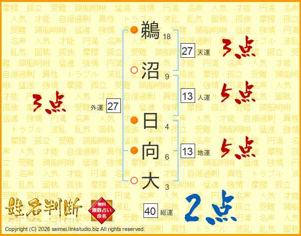 鵜沼日向大さんの人運は13画の5点!