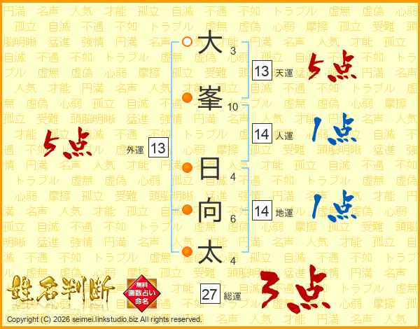 大(3画)峯(10画) 日(4画)向(6画)太(4画)