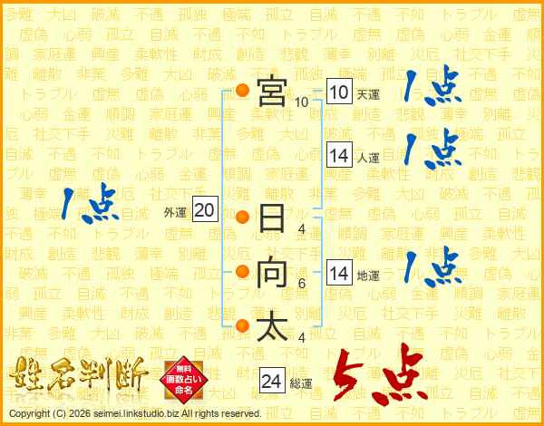宮日向太さんの人運は14画の1点!