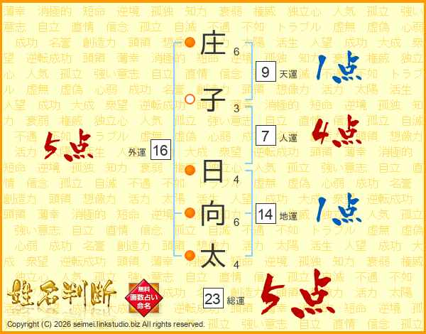庄子日向太さんの総運は23画の5点!