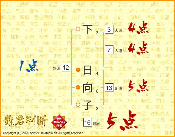 下日向子さんの地運は13画の5点!