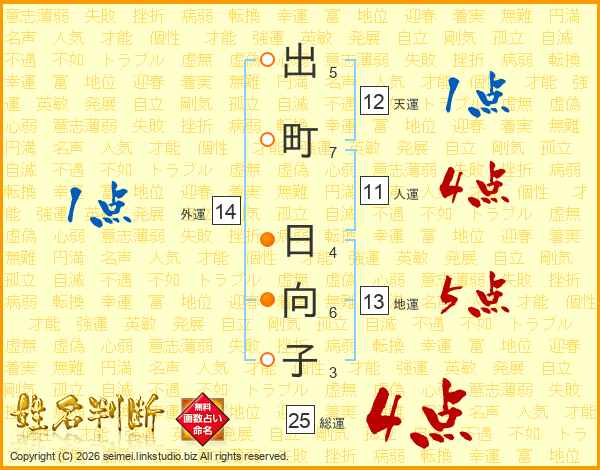出町日向子さんの総運は25画の4点!