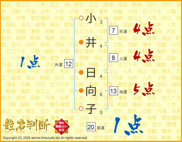 小井日向子さんの総運は20画の1点!