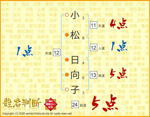 小(3画)松(8画) 日(4画)向(6画)子(3画)