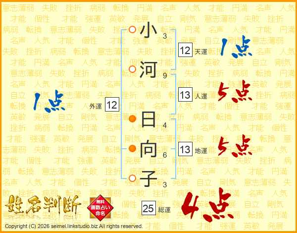 小河日向子さんの総運は25画の4点!