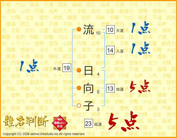 流日向子さんの総運は23画の5点!
