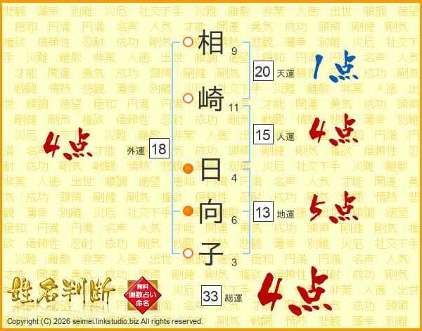 相(9画)崎(11画) 日(4画)向(6画)子(3画)