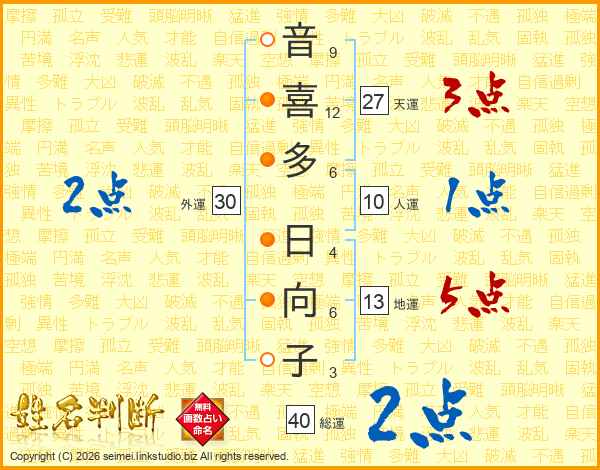 音喜多日向子さんの総運は40画の2点!