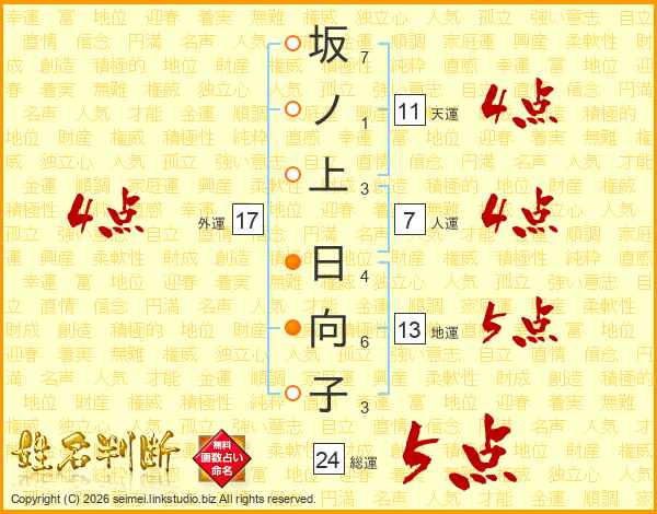 坂ノ上日向子さんの天運は11画の4点!