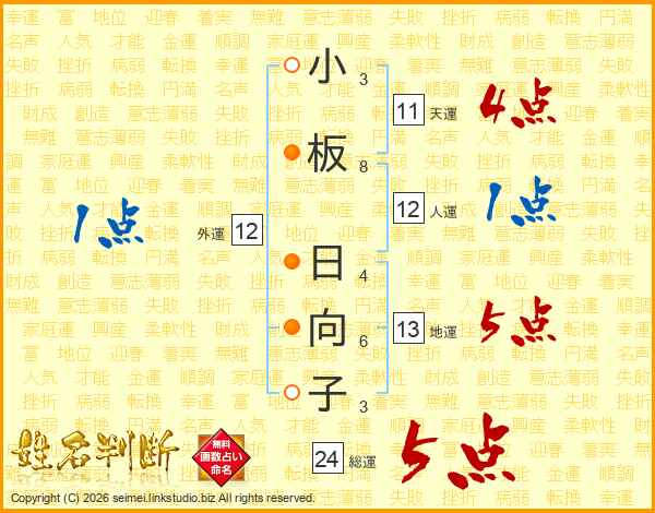 小(3画)板(8画) 日(4画)向(6画)子(3画)
