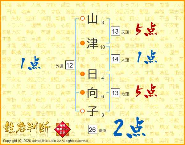 山津日向子さんの総運は26画の2点!