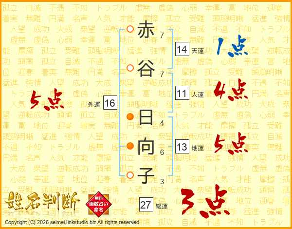 赤谷日向子さんの外運は16画の5点!