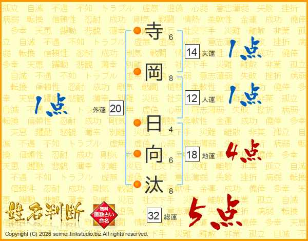 寺岡日向汰さんの総運は32画の5点!