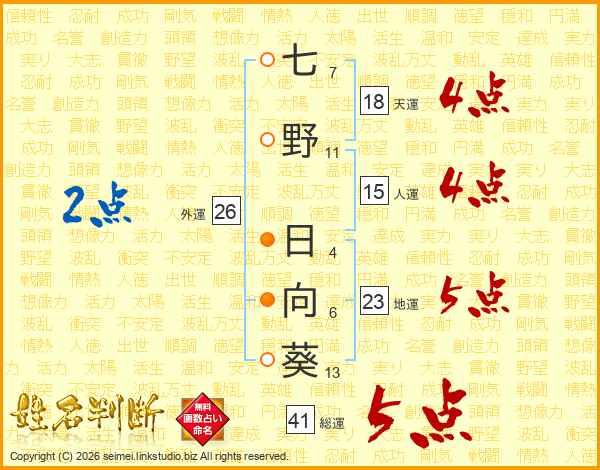 七野日向葵さんの外運は26画の2点!