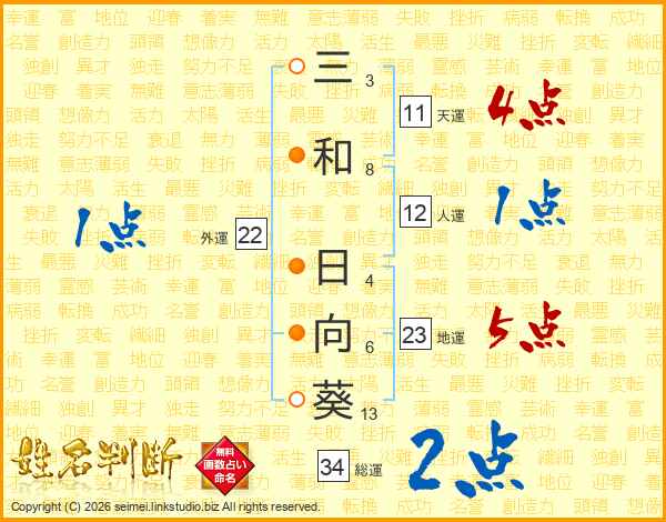 三和日向葵さんの総運は34画の2点!