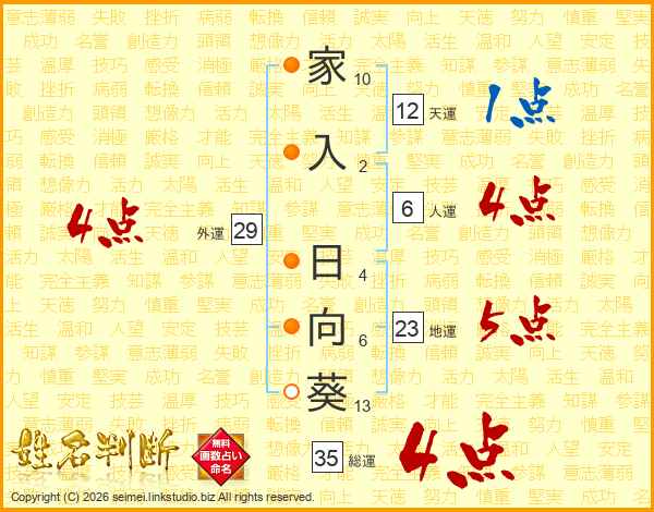 家入日向葵さんの総運は35画の4点!