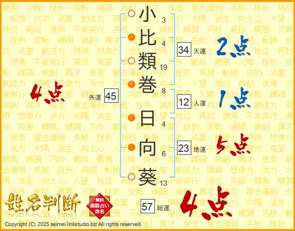 小比類巻日向葵さんの外運は45画の4点!