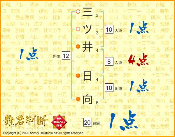 三(3画)ツ(3画)井(4画) 日(4画)向(6画)